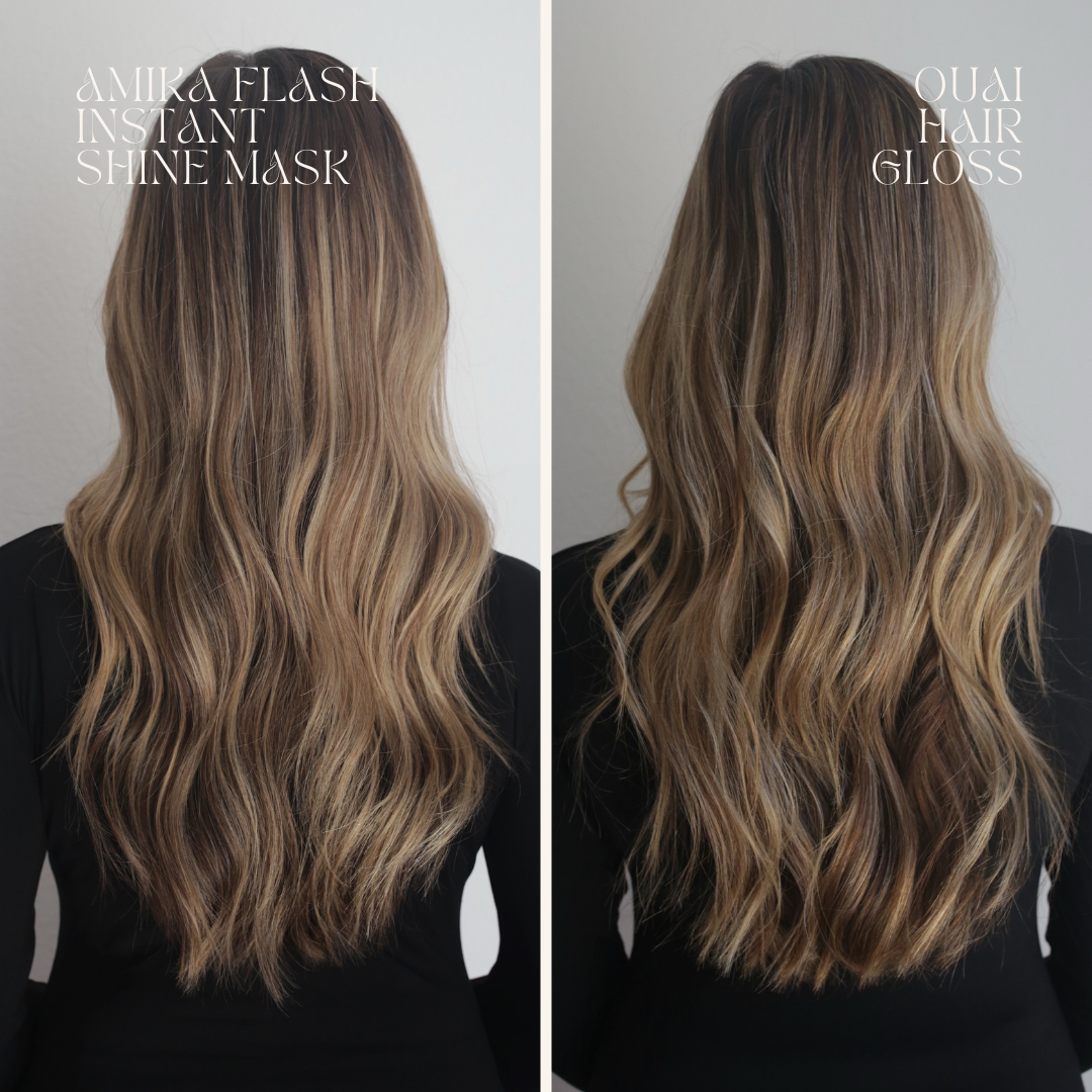 amika flash instant shine mask vs ouai hair gloss results comparison