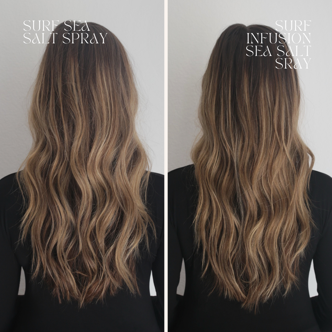 If you want true beach texture, the original Surf Sea Salt Spray performs better. It give you gritty, textured waves whether you style damp or dry hair. On the other hand, Surf Infusion is noticeably smoother, more hydrating, and softer.