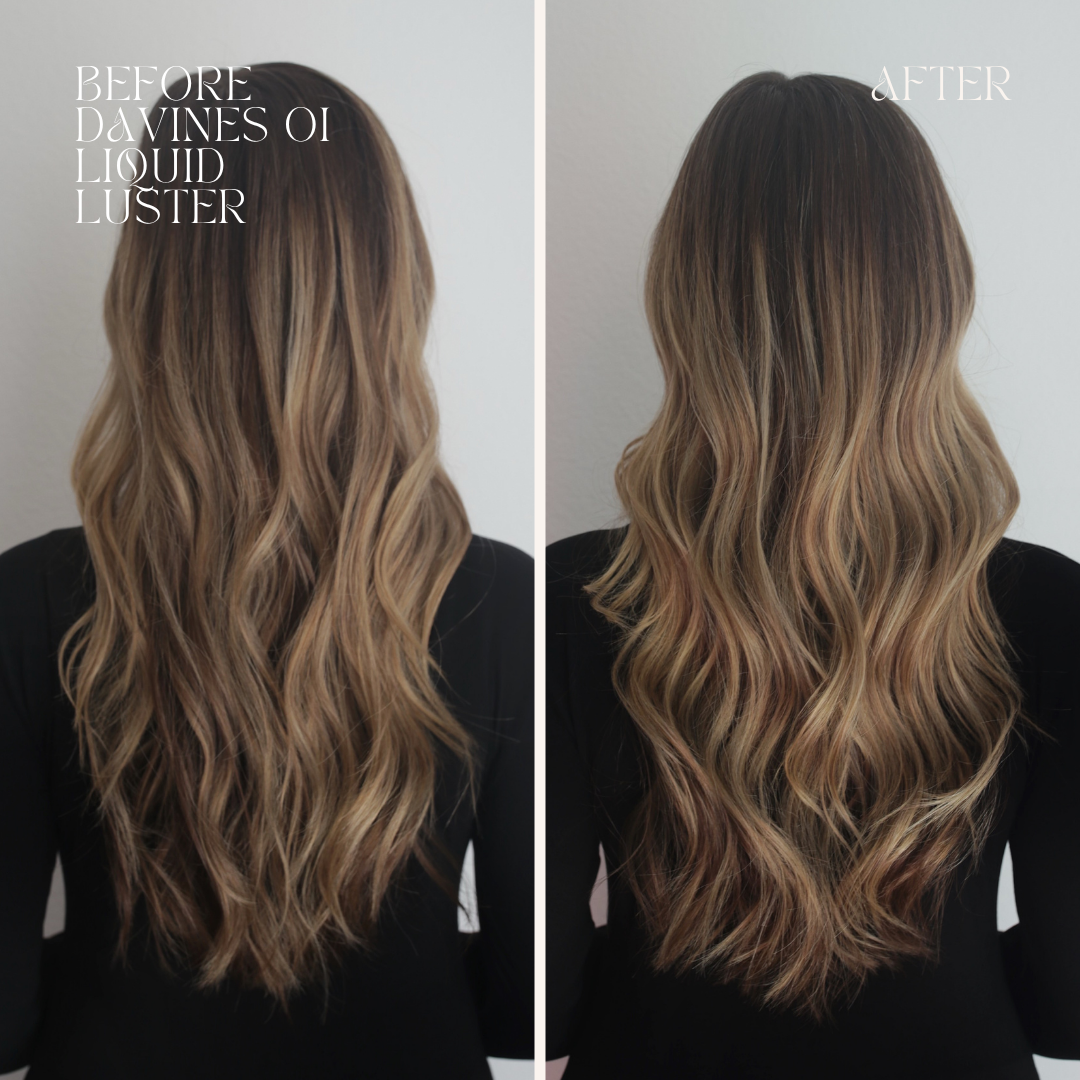 Davines Liquid Luster provides more natural results. The shine is softer, and it enhances your hair’s texture instead of transforming it. The results are still lightweight and healthy-looking, but much less dramatic.