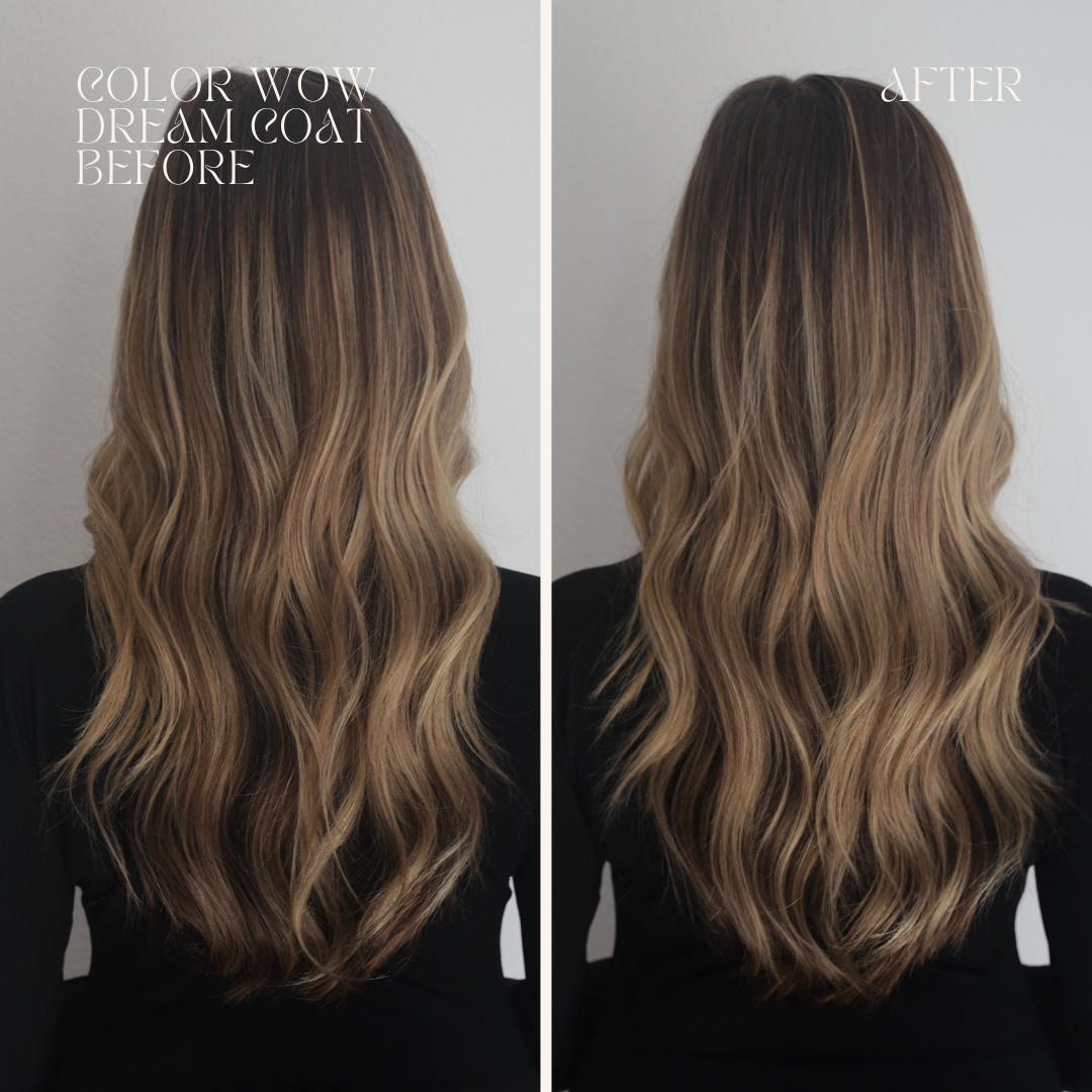 Color Wow Dream Coat creates a glass-like, ultra-sleek finish and gives you a salon-worthy “blowout shine” look. Your hair is more polished and structured; think Kim Kardashian or Cher, rather than Olsen twin boho chic.