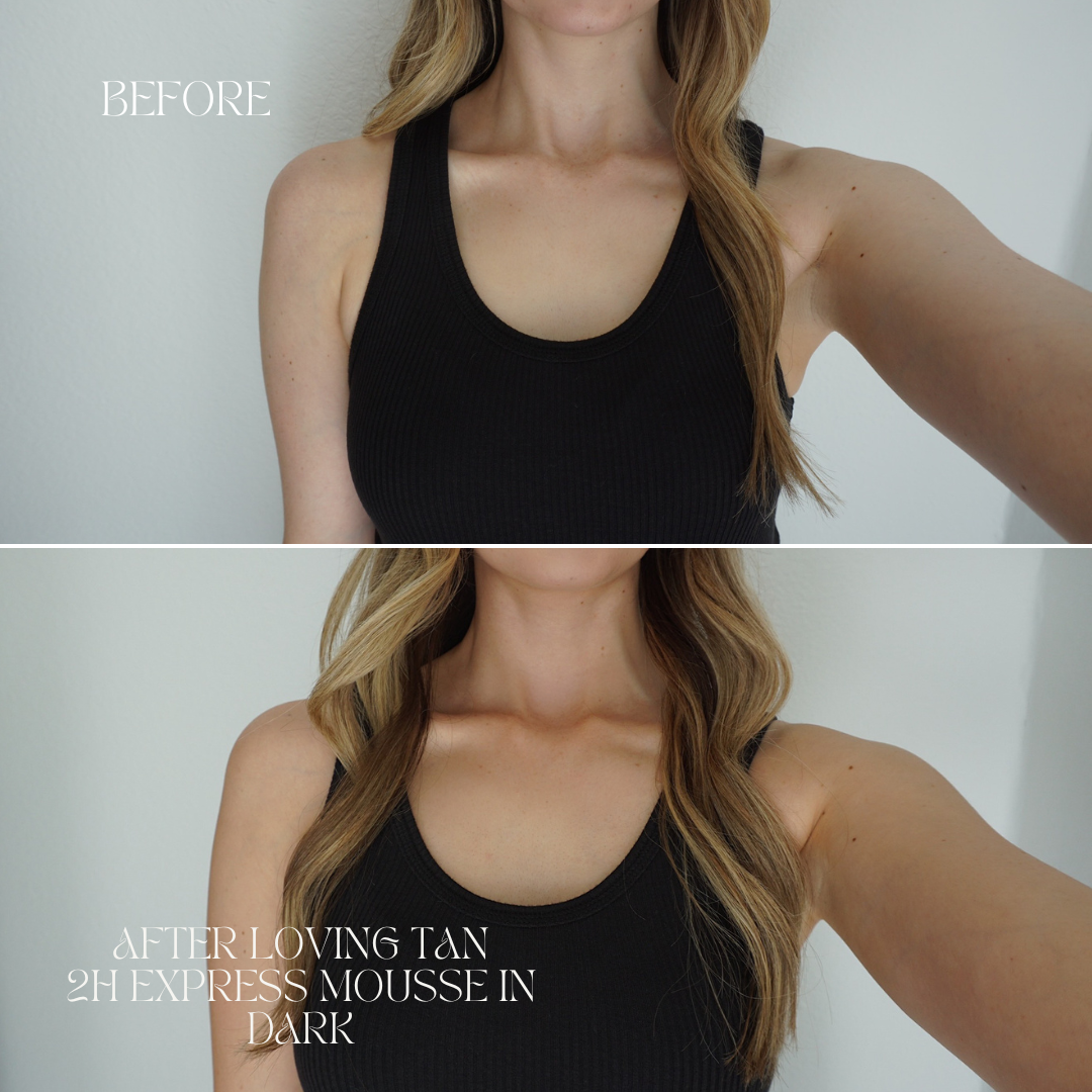 loving tan 2 HR express mousse in dark before and after
