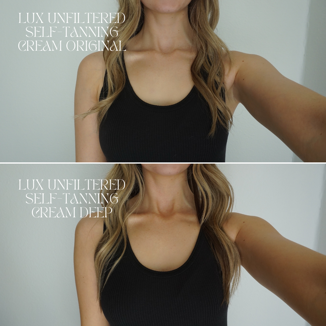 lux unfiltered summer skin original hydrating gradual self-tanning cream original vs deep results