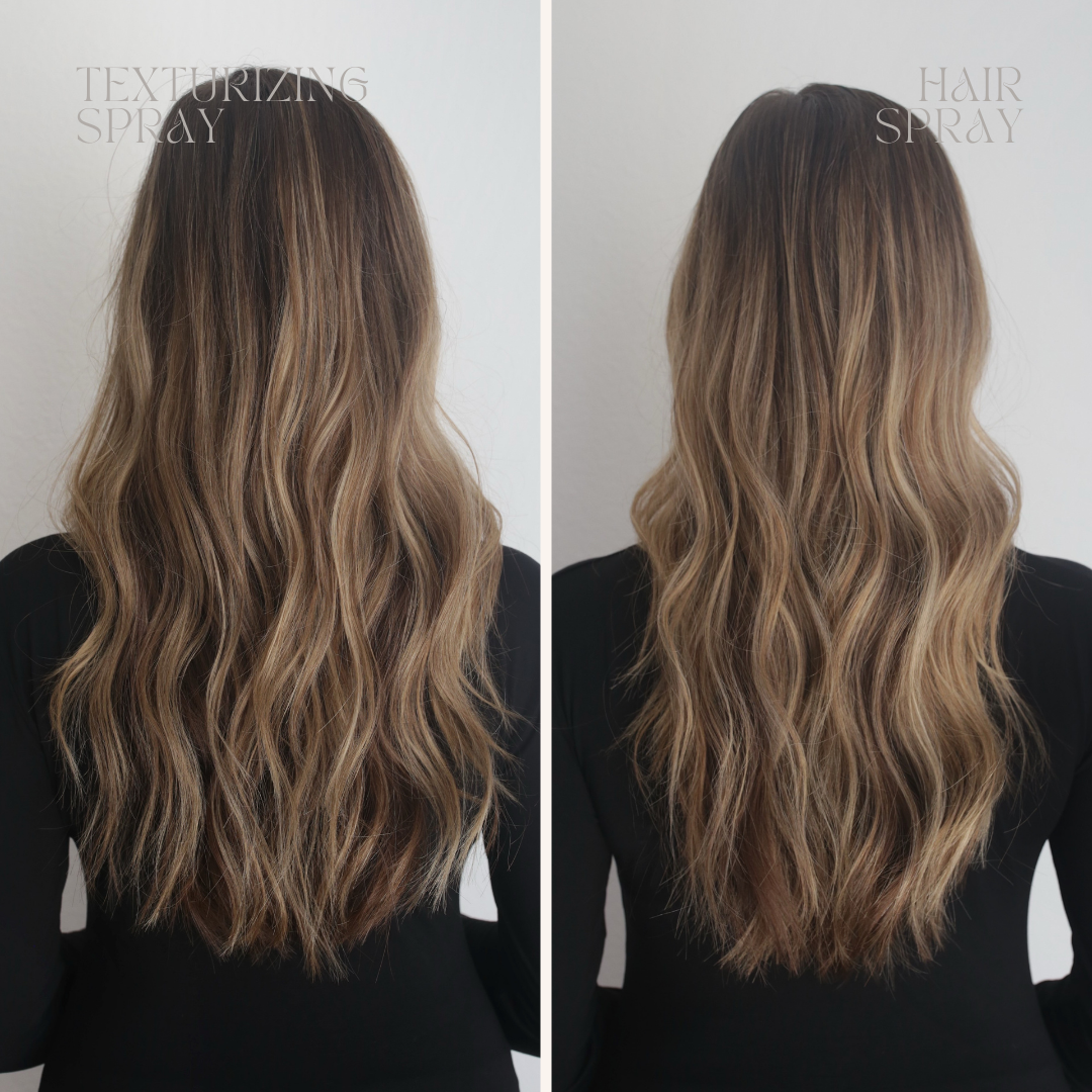 Texturizing spray = movement + volume + grip, whereas hairspray = hold + control + longevity.
